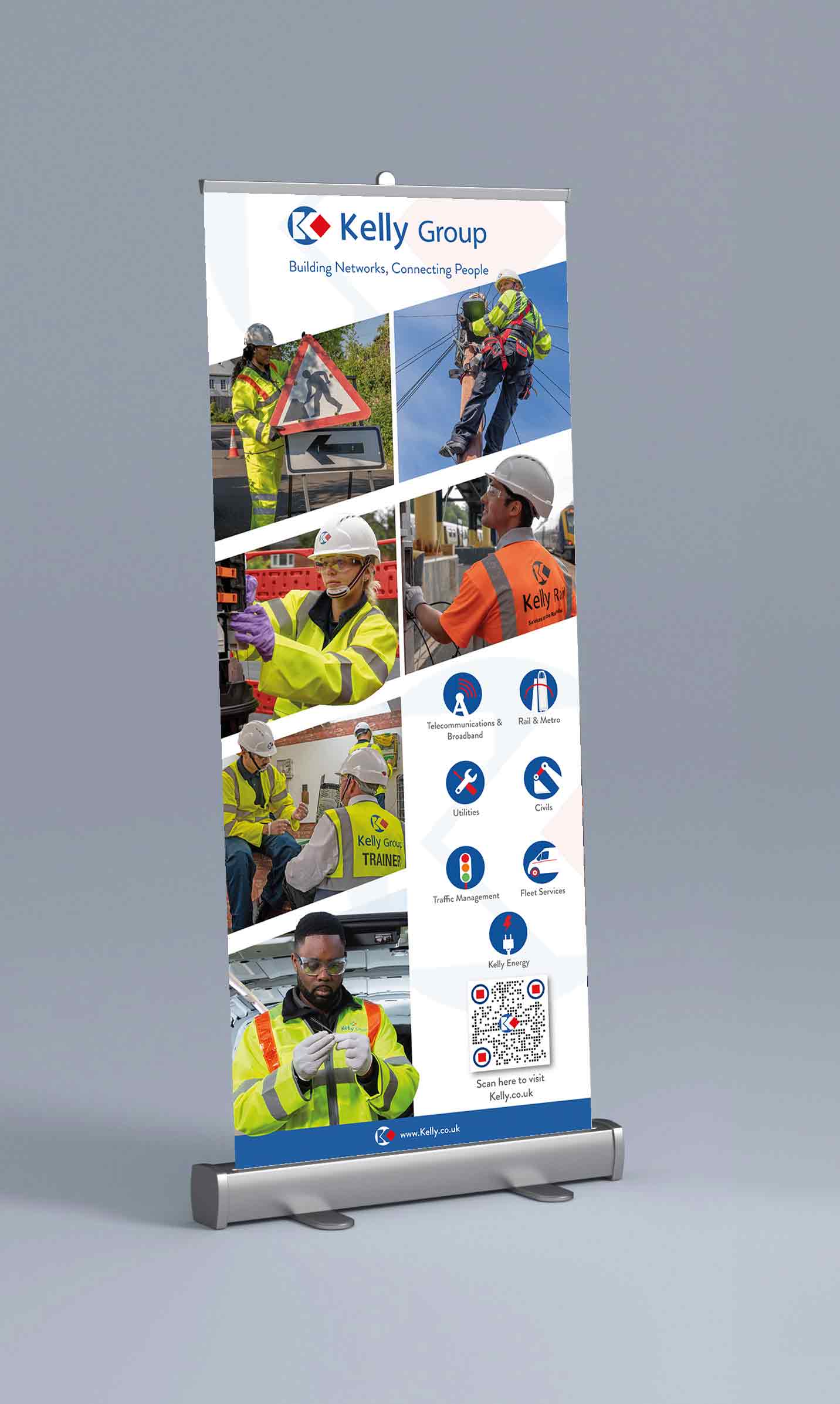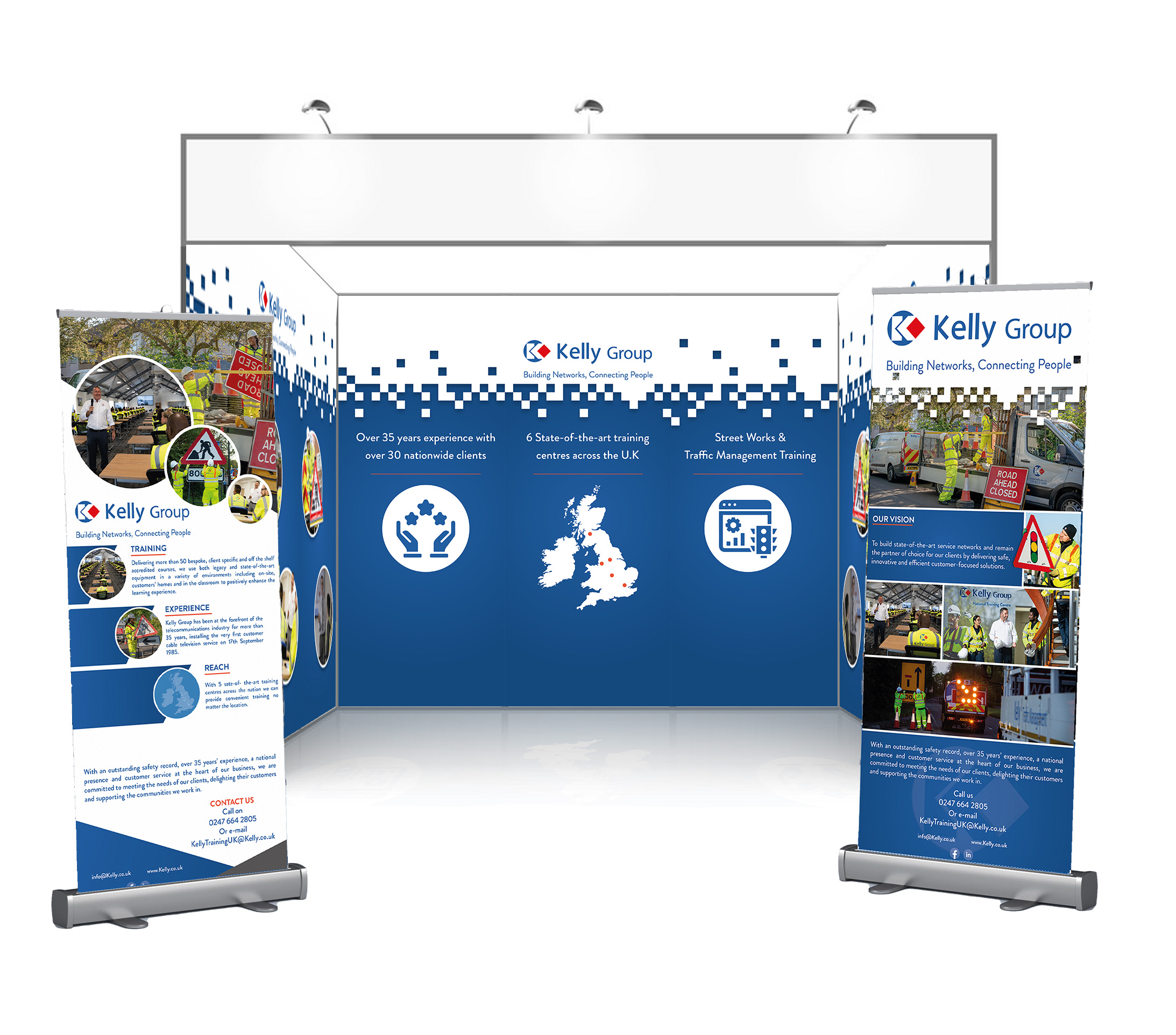 A collection of various marketing materials created for Kelly Group. Pop up banners, Booths & Handouts for events. Packaging for branded products and more, all conceptualised and created myself.